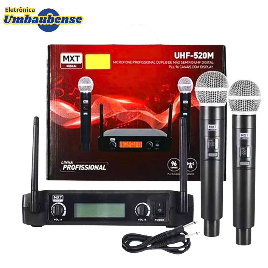 O MXT UHF-520M é um sistema de microfone duplo sem fio profissional projetado para oferecer alta qualidade de áudio, estabilidade e praticidade em apresentações, eventos, cultos, palestras e shows. Equipado com tecnologia UHF Digital e 96 canais selecionáveis, garante transmissão limpa, sem interferências e com excelente alcance.