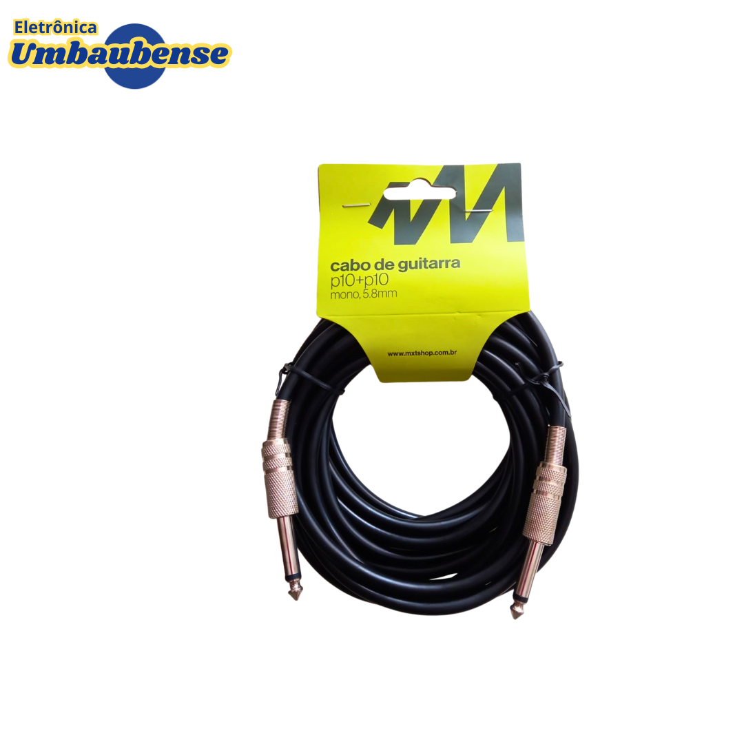 Cabo para Violão e Guitarra P10 X P10 de 5 metros ideal para gravação em estúdio e ao VIvo.