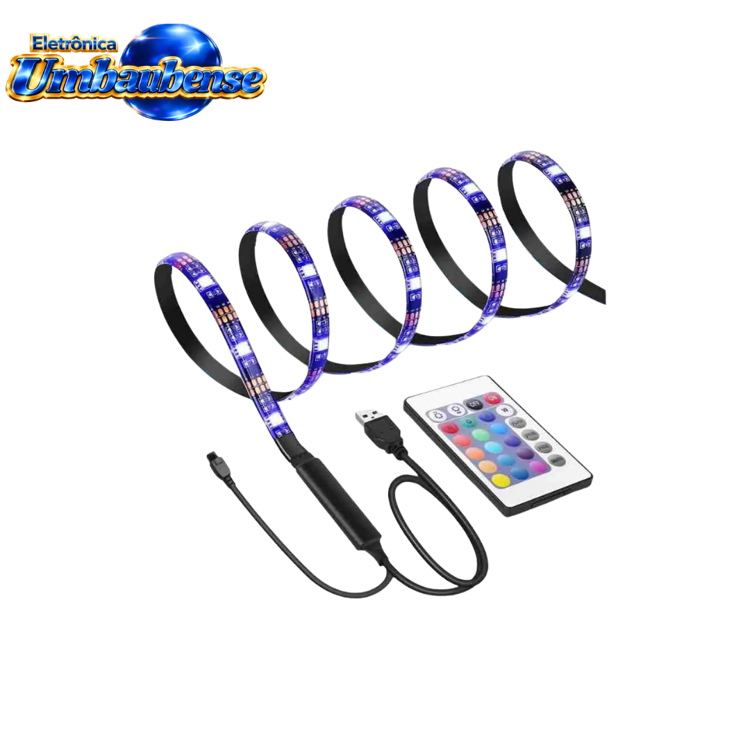 Fita LED RGB Colorida Inteligente com Controle – 5 Metros (USB)