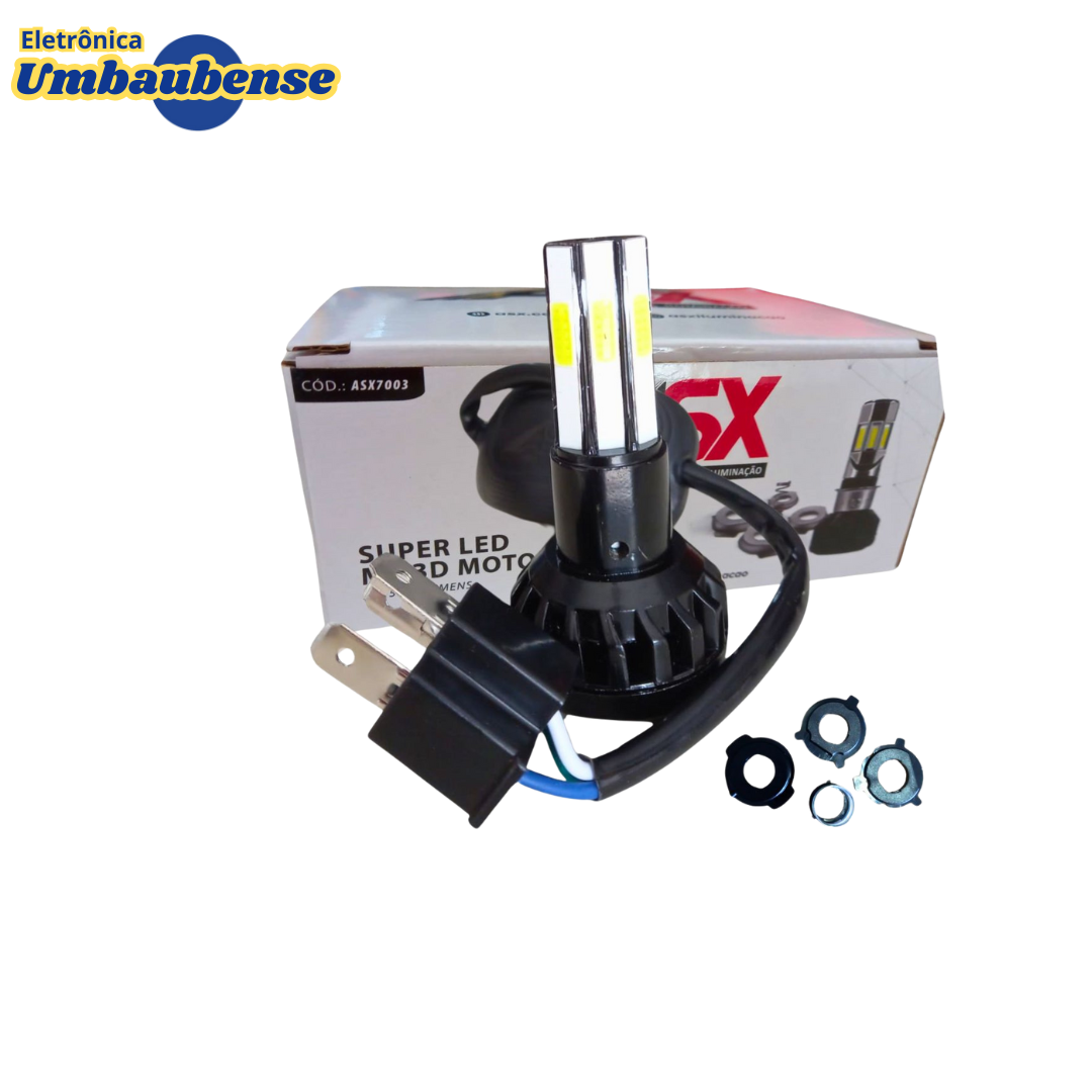 Potência, segurança e estilo em um só produto! A Lâmpada Super LED M3 3D da ASX oferece alto desempenho para motociclistas exigentes. Com 5.000 lúmens de brilho real e iluminação 360°, garante excelente visibilidade mesmo nas condições mais desafiadoras. Sua estrutura compacta facilita a instalação e o sistema de refrigeração com cooler embutido aumenta a durabilidade e eficiência.