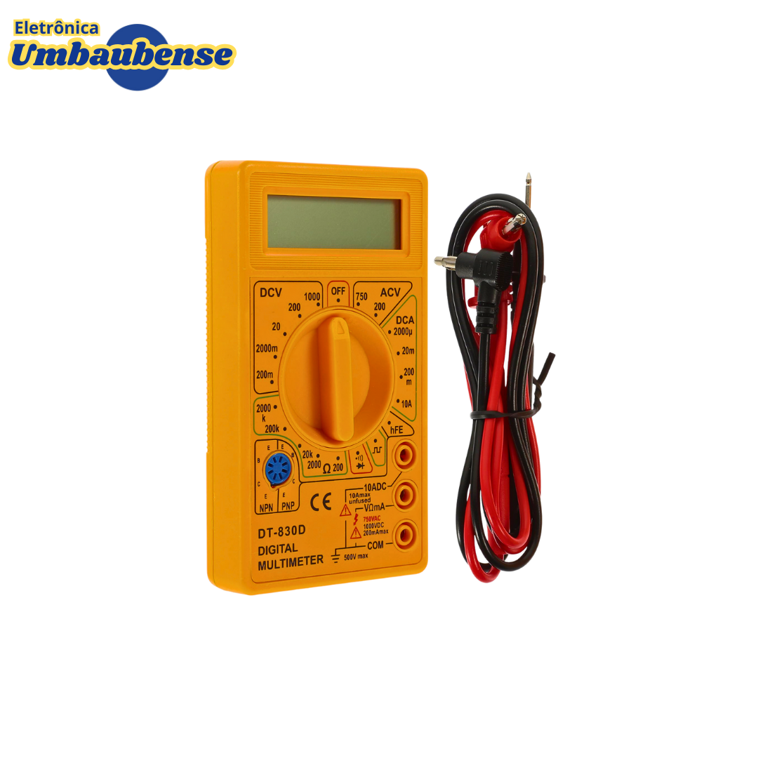 O Multímetro Digital DT-830D é um aparelho prático e fácil de usar para medir tensão (AC/DC), corrente, resistência, além de testar diodos e transistores. Ideal para uso doméstico, técnico ou em projetos eletrônicos.