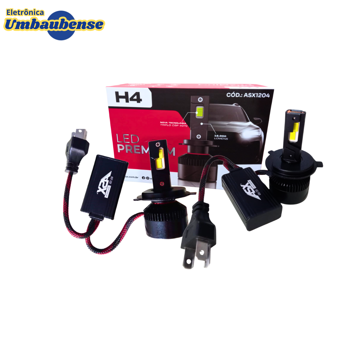 A Lâmpada LED ASX H4 Premium oferece máxima performance e brilho para o sistema de iluminação do seu veículo. Com impressionantes 18.000 lúmens, ela entrega um feixe de luz extremamente forte, nítido e uniforme, garantindo muito mais segurança e visibilidade durante a condução, seja na cidade ou na estrada.